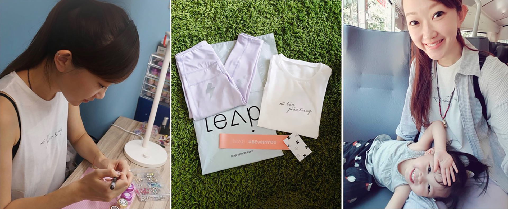 這次Leap很開心窺探NAMIE的生活,看看她的故事,在我們眼裡她是協槓女子 #Leap跳躍學 也是 #妳很漂亮 的代表。這次也請她試穿了〝妳很漂亮〞新品系列,她事後也開心的表示「新品褲子很舒適好穿上,夏天帶孩子上下5樓和工作一整天都不會悶熱,活動自如很厲害。忙碌的生活給自己一些時間穿上機能服行動,也能提醒自己動起來!」對她來說什麼樣的女生是〝妳很漂亮〞的呢?「不急不徐慢慢規劃,一步一步找自己喜愛的事物,建立起自己的自信,你會發現自己越來越相信自己,就會越來越美!Do my best as I do!有自信做自己最美!」