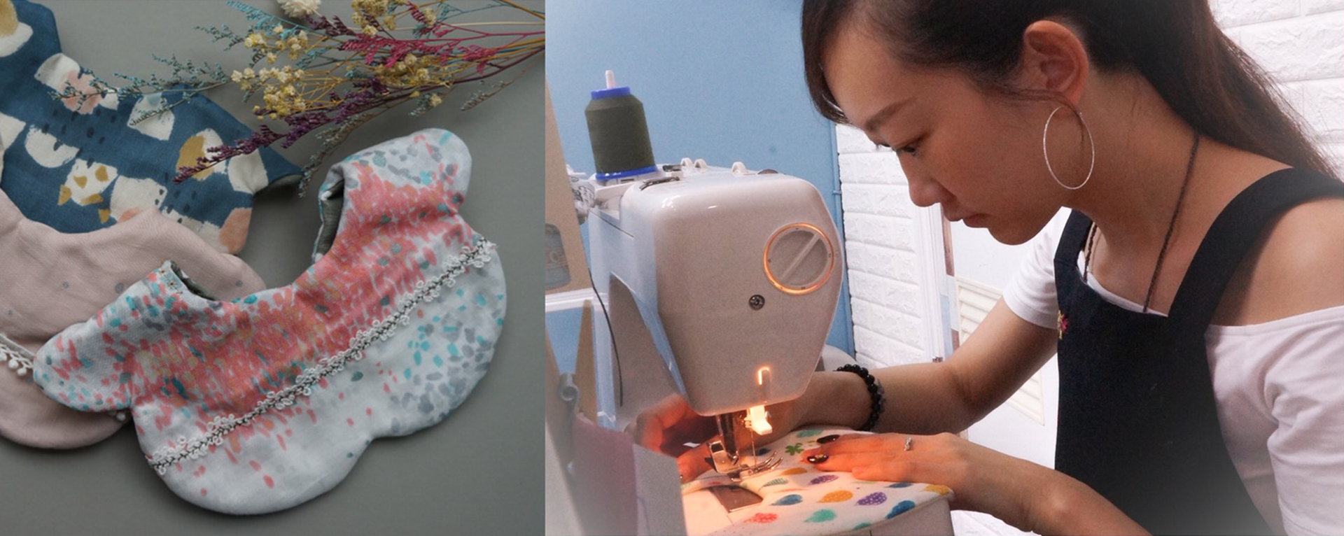 NAMIE:「當初在為女兒挑選圍兜兜時,總是很難挑到尺寸完全剛好的脖圍,或是不是質料不好就是圖案不好看。那時才開始在網路上跟著媽媽社團們購買日本手製圍兜,雖然條件都滿足了金額卻非常高,對於需要日日更換的媽媽來說負擔有點大。就拿出了自己從小就愛的家政課底子來研究,也精挑日本製紗布為女兒打造獨一無二的圍兜兜。」